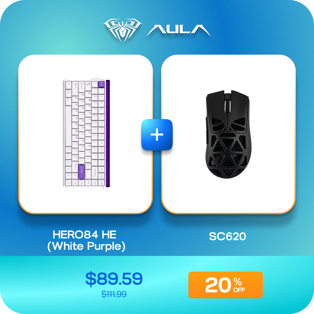 AULA HERO84 HE (White Purple) + AULA SC620 Bundle