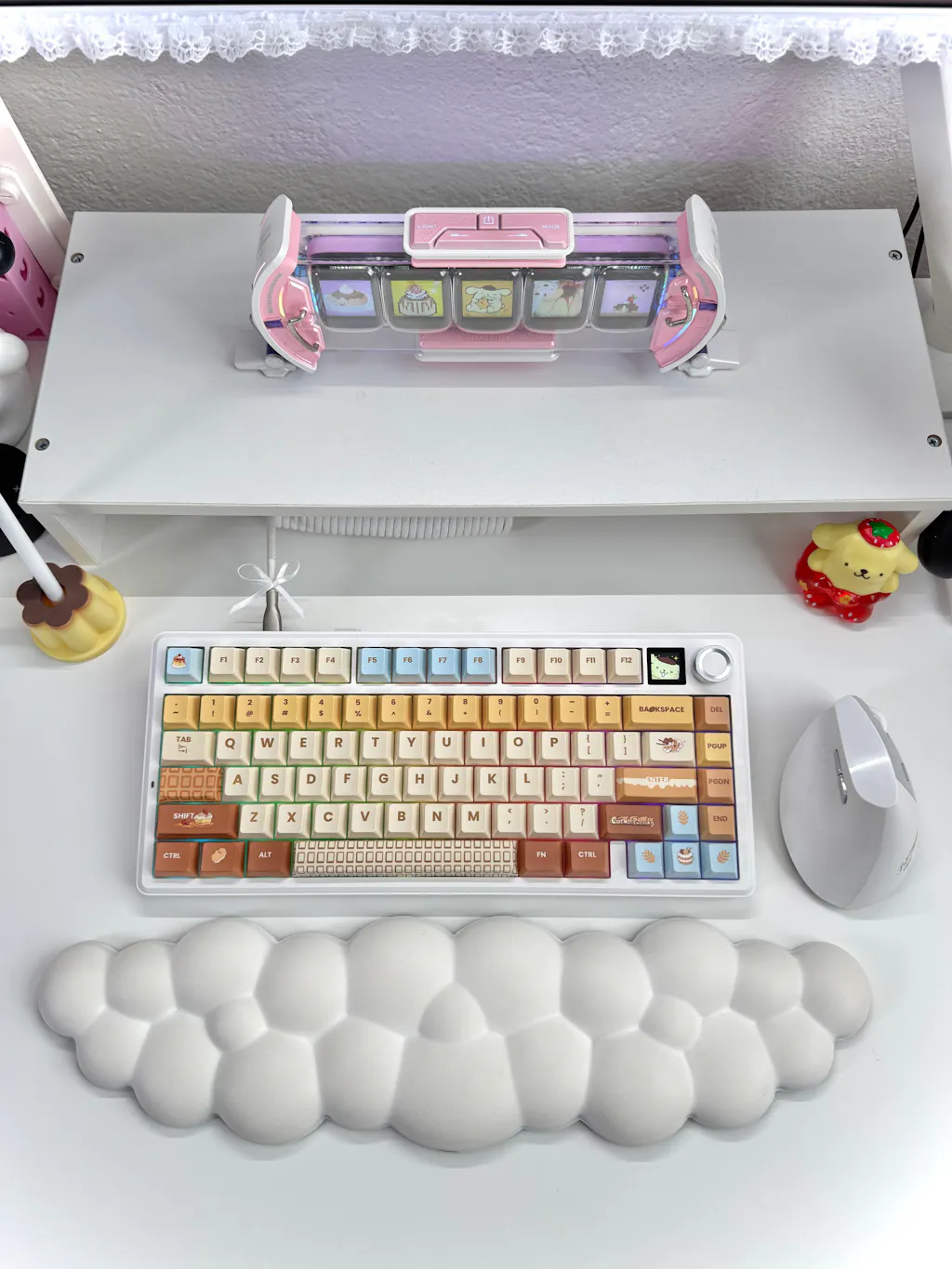 Say goodbye to wrist strain and finger fatigue, as this Cherry-profile keyboard becomes your ergonomic assistant in browsing the digital world. With the 2cm-low front height and a 2-stage adjustable kickstand, typing angle can be as high or low as your comfort calls for. The Gasket-Mount structure separates F75 Max’s PCB from its shell to rid the harsh bottom-out, while the flex-cut PC plate gives it extra flexibility for soft and soothing typing.
