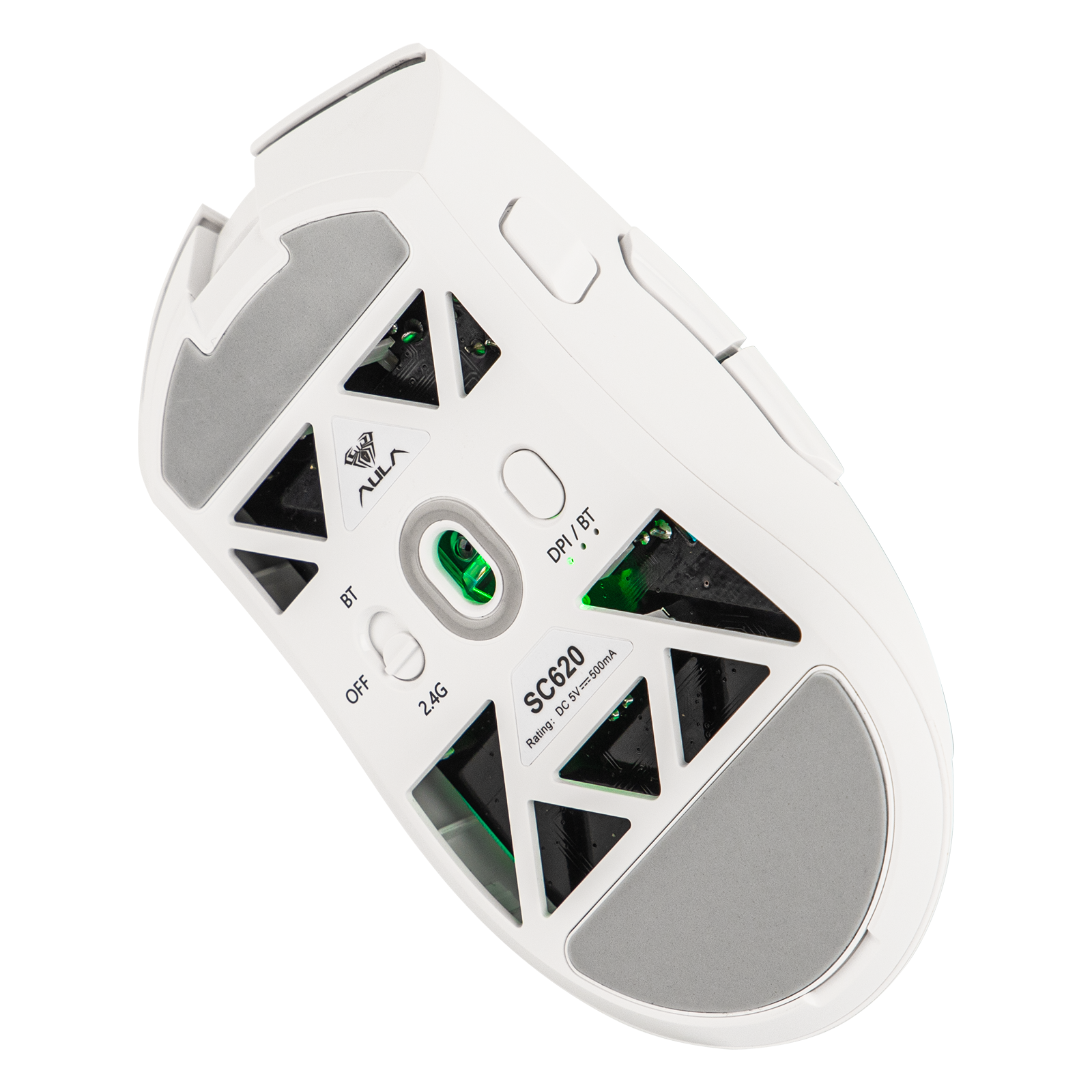 Weighing only about 67g, the SC620 gaming mouse’ s advanced honeycomb shell reduces weight while maintaining structural strength. The open design improves airflow to keep your hand cool and dry during long sessions, reducing sweat and fatigue. Combined with an ergonomic shape that fits naturally in your palm, this mouse offers superior comfort and control for extended use. The SC620 brings a featherlight feel for uninterrupted performance.