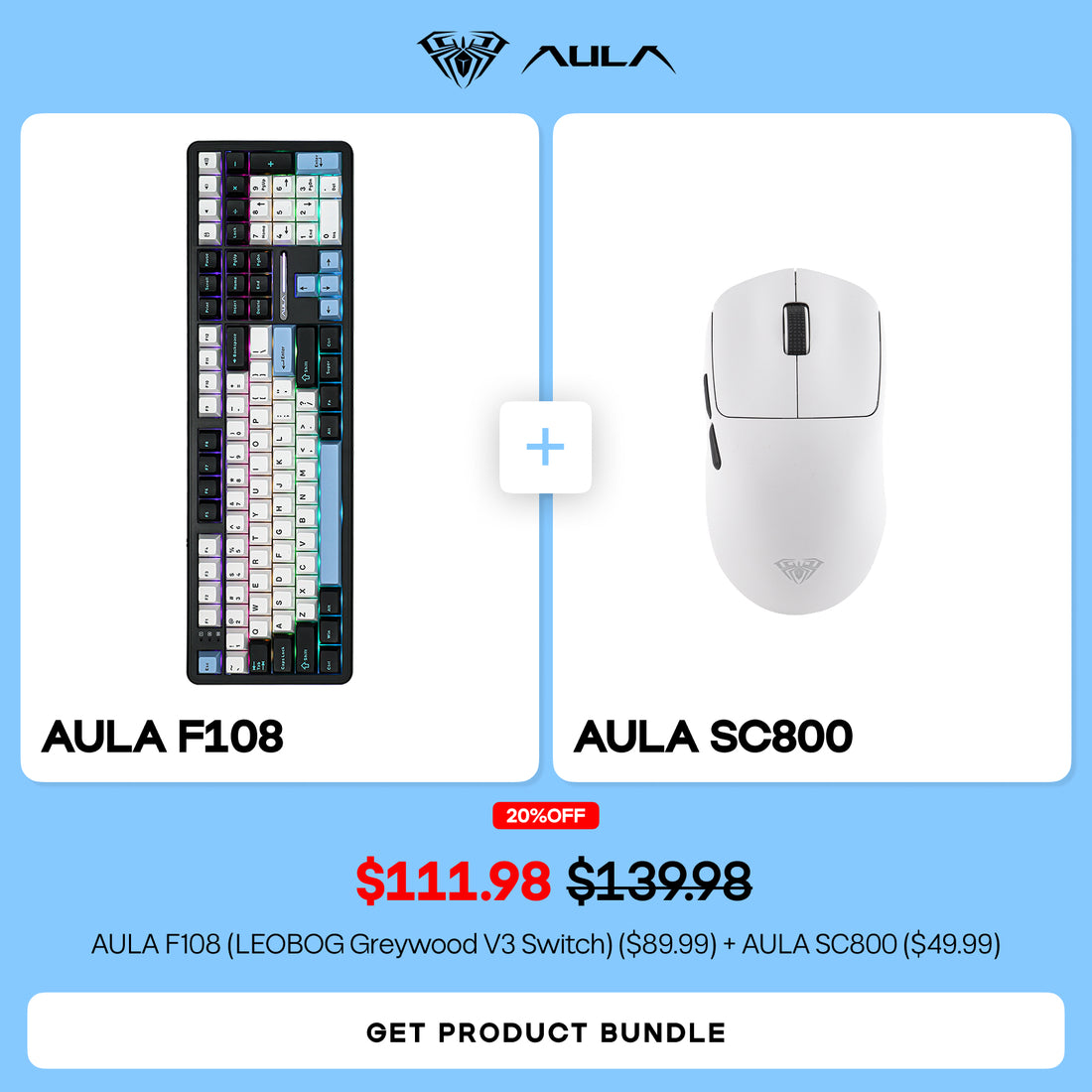 AULA F108(LEOBOG Greywood V3 Switch) + AULA SC800 Bundle