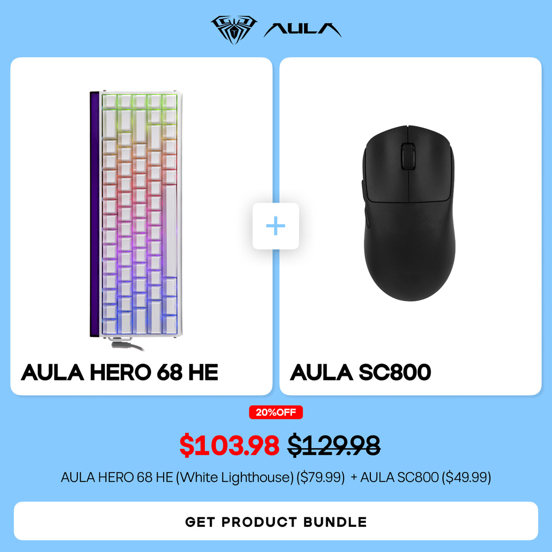 AULA HERO 68 HE (White Lighthouse) + AULA SC800 Bundle